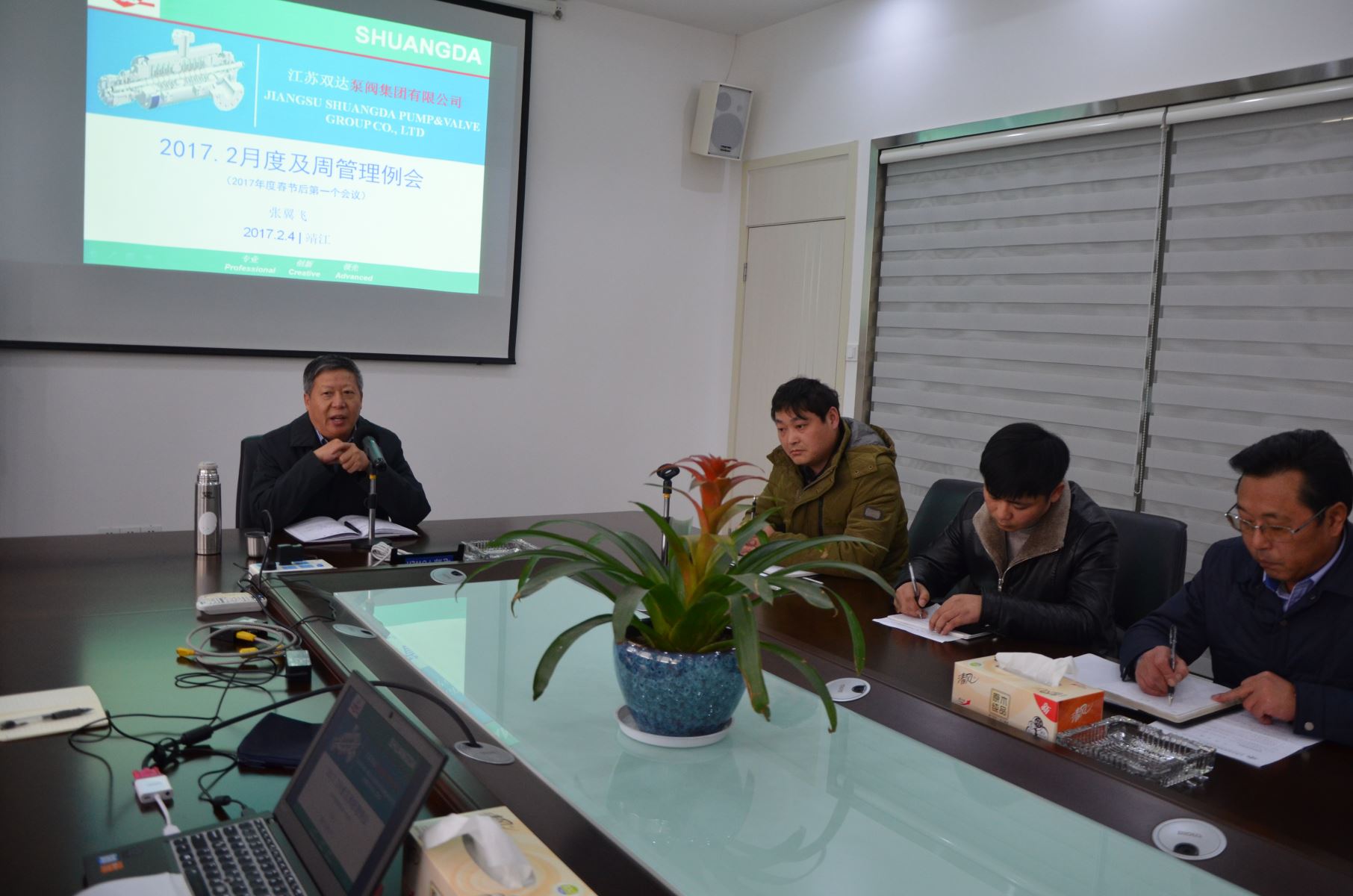 2017年2月4日下午两点,双达公司召开“鸡年”第一个总经理办公会,吴永贵董事长就做好2017年度各项工作做了动员,号召全体员工要迅速调整好精神状态,全身心投入到新的一年的各项工作中去。
