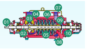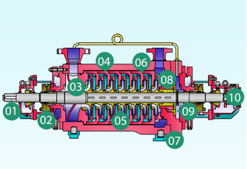 9. Balancing structure: The pump employs a combined balance drum-disc-drum mechanism, which not only effectively prevents the occurrence of flashing but also significantly enhances the service life of the bearings and the overall operational stability.